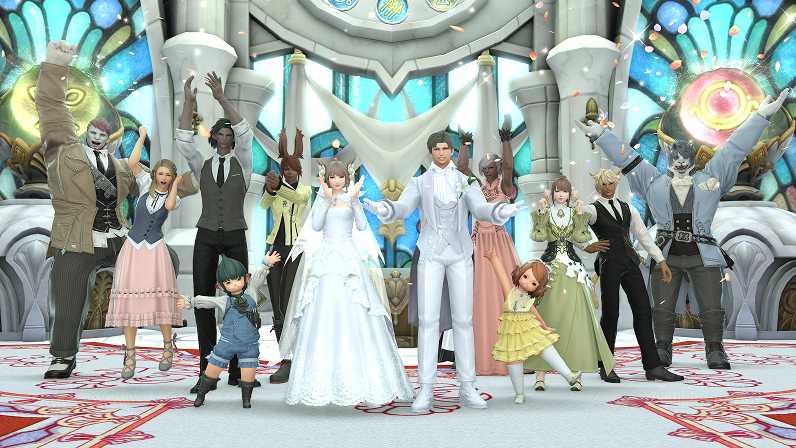 Après l'échange des anneaux, les deux conjoints et leurs convives disposent d'un temps libre lors duquel ils peuvent discuter ou encore prendre des captures d'écran.