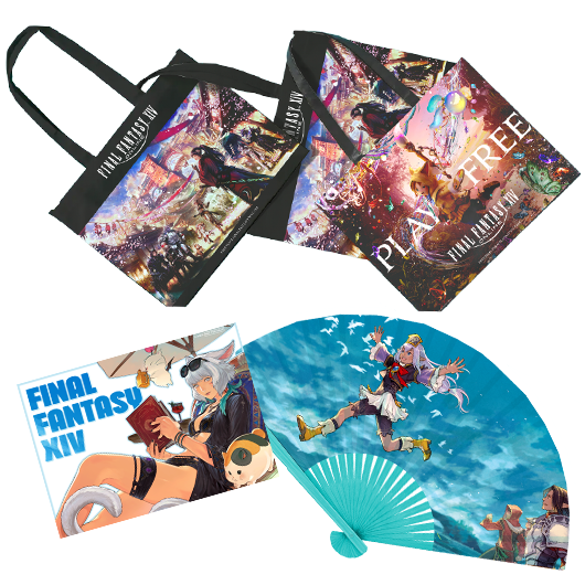 Qu’il s’agisse d’autocollants, de sacs ou d'éventails FINAL FANTASY XIV pour rester au frais tout l’été, nous donnerons plein d’objets intéressants aux visiteurs. Nous donnerons les sacs au stand à certains moments de l’événement, et les fans de FFXI pourront recevoir des récompenses quand ils auront reçu les trois coups de tampon. Nous avons aussi préparé un petit bonus pour ceux qui viendront en cosplay FFXIV ou habillés avec des produits officiels !