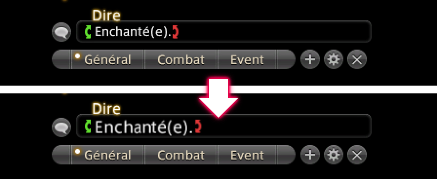 La taille des caractères dans le champ de saisie peut être configurée à partir du menu Système > Configuration personnage > Fenêtre de log > Log via l'option "Taille de la police du champ de saisie".