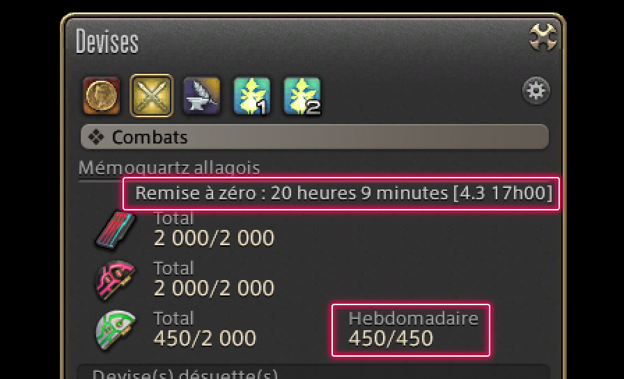 Qu'il s'agisse de la limite hebdomadaire ou totale, les mémoquartz allagois obtenus dépassant cette limite ne sont pas comptabilisés.
