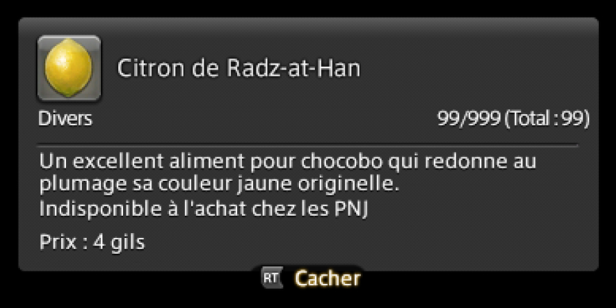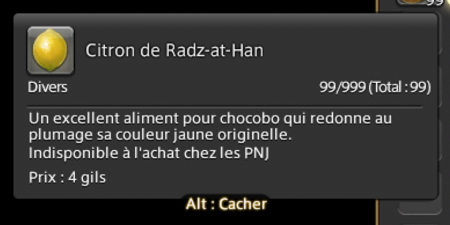 Après avoir placé votre chocobo dans son écurie, offrez-lui un citron de Radz-at-Han.