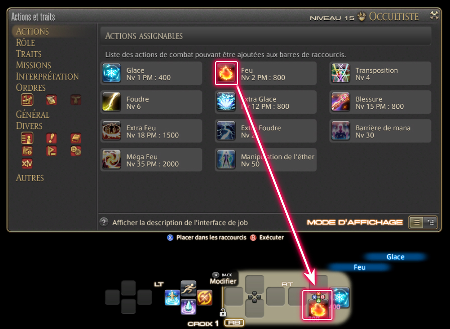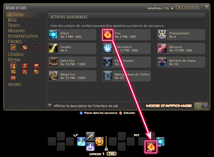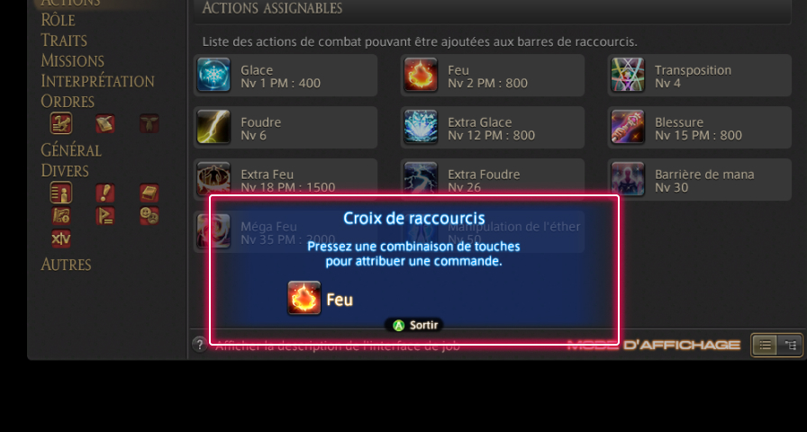 * Il est possible d'enregistrer jusqu'à 8 croix de raccourcis par classe pour un personnage.